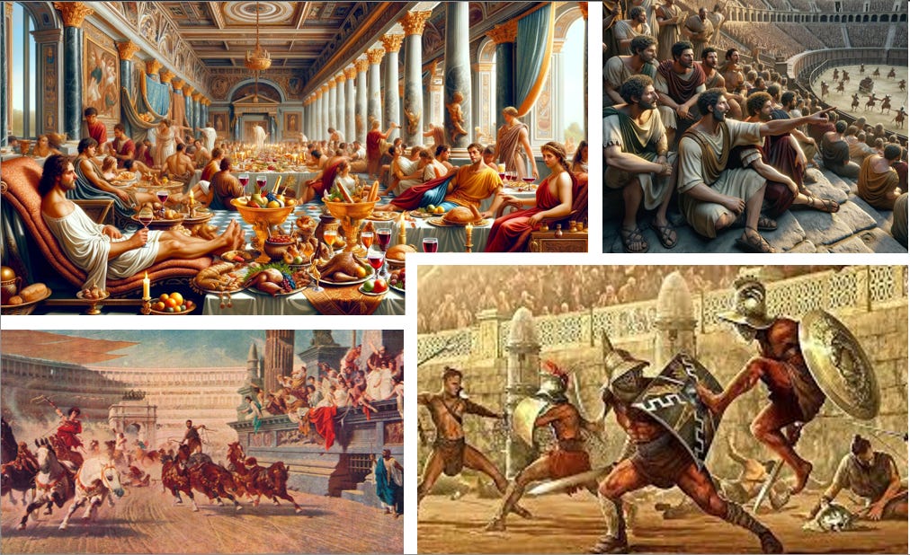 Despite leadership corruption in such a brutal and ruthless era, what is particularly striking is that Roman leaders developed a deliberate governing playbook—a calculated strategy designed to control, distract, and pacify the population, particularly during periods of corruption, economic hardship, or political instability. These tactics were often subtle and difficult for ordinary citizens to recognize. Over time, people became accustomed to their conditions and stopped questioning the system until hardship became unbearable and unrest finally erupted.